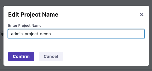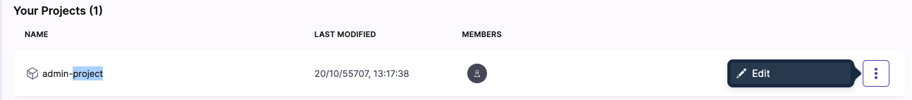 Click options icon to open the options menu and click on the edit option (demonstrated in this example as admin-project