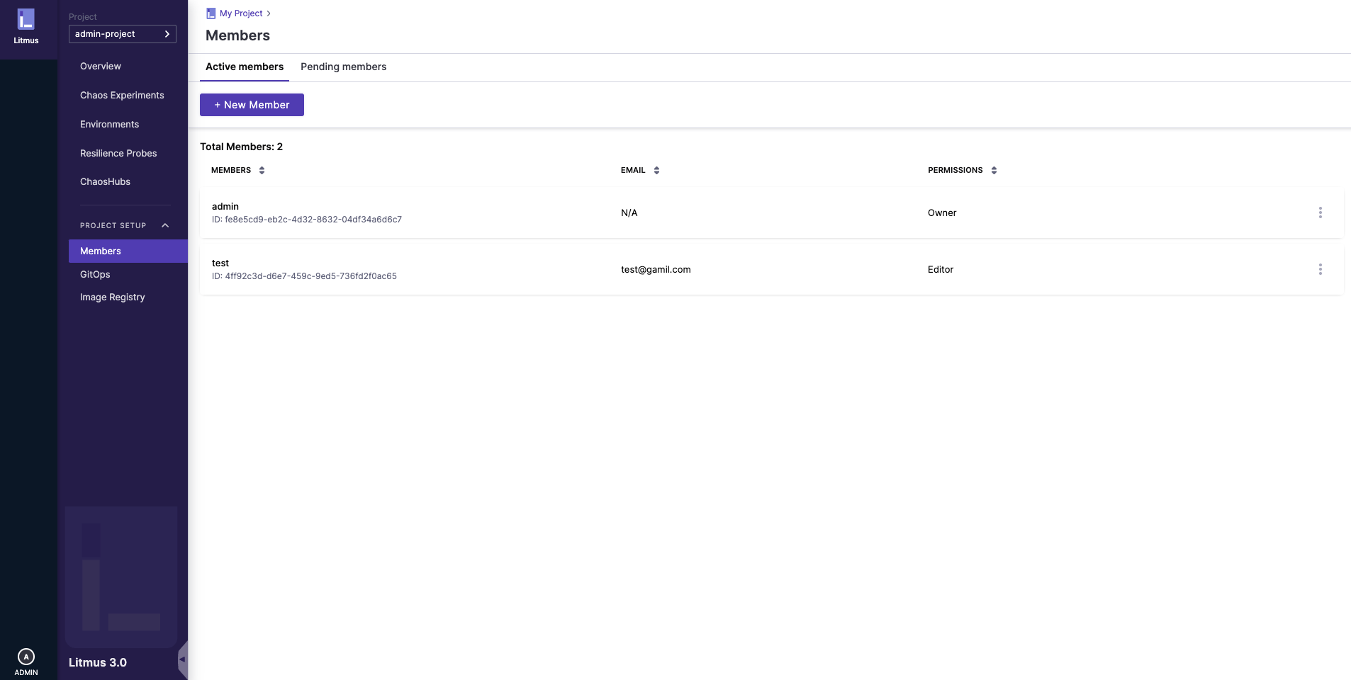From the list of all available members, choose the ones you want to collaborate on your chaos with and decide what project level access they should have to your project (Viewer/Executor) and hit the same button.
